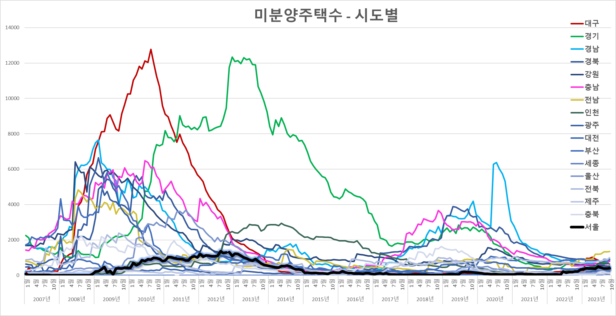 지역별로 미분양주택수 추이를 참고자료로 추가하였습니다.